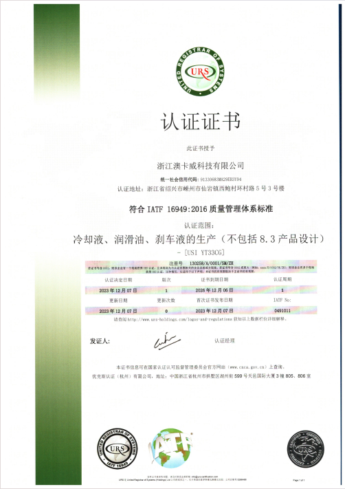 1、具有出色的低温流动性和泵送性能,保证车辆在严苛的低温环境下制动系统正常⼯作; 2、具有出色的流动性能,满⾜各类装在ESP系统⻋辆在严寒条件下的使⽤需求; 3、具有良好的润滑性能,能够有效降低制动活塞和刚体间的摩擦系数,延长活塞使用周期。