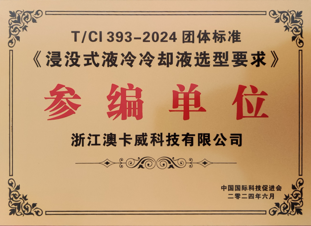 征途如虹,浩荡前行——澳卡威参编的《浸没式液冷冷却液选型要求》团体标准正式发布