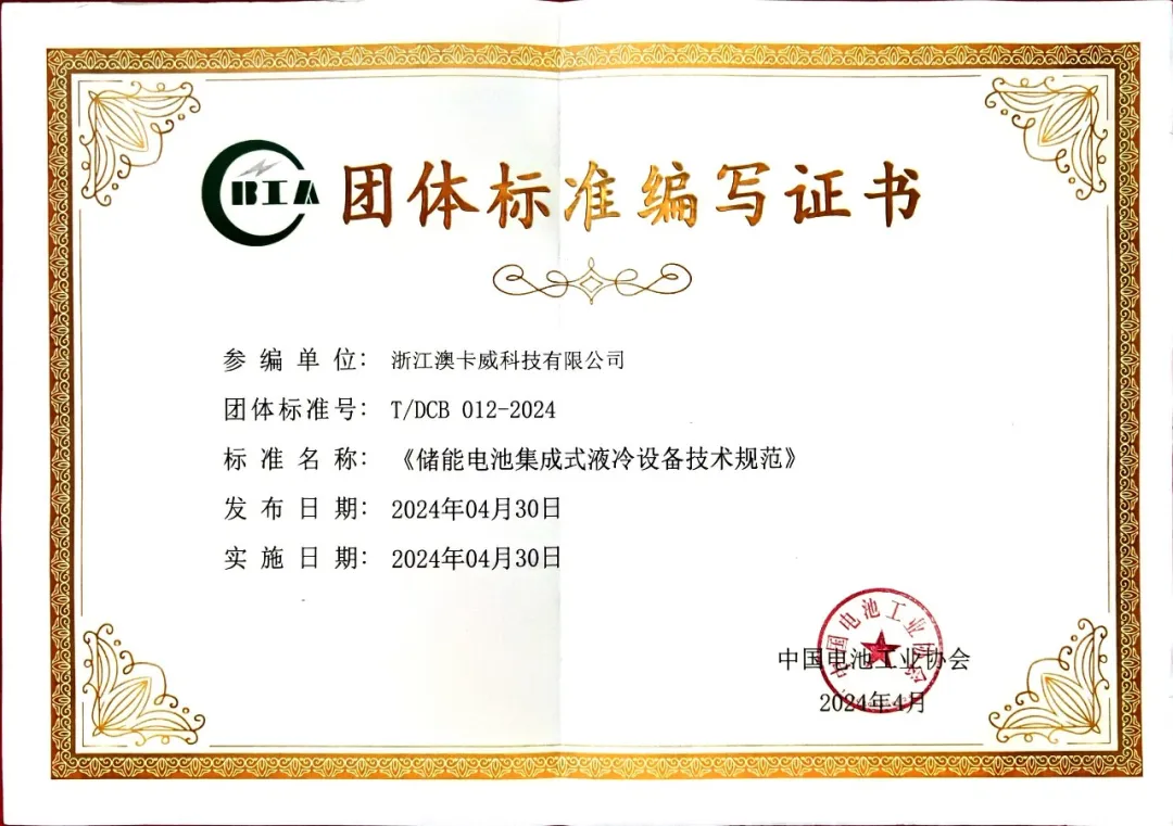 聚势谋远,共赢未来——澳卡威参编的《储能电池集成式液冷设备技术规范》团体标准正式发布