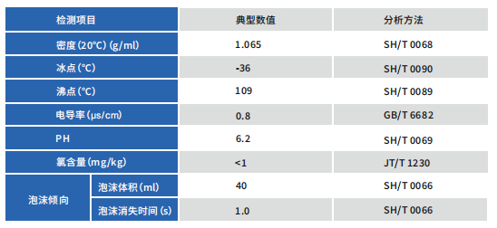 1.独特的非离子防锈剂吸附分子可在冷却系统内部形  成保护膜,有效的抑制双极板和散热系统金属的腐  蚀;2.高纯度的提纯生产技术,控制极低的冷却液电导率,  从而抑制膜堆的电击、 电化学腐蚀等产生的离子化,  减少膜堆的功效损失;3.含独特的电化学抗氧化添加剂,大大提高产品的使  用寿命;4.不含重金属禁用物质,降低冷却液更换时对环境的  污染。